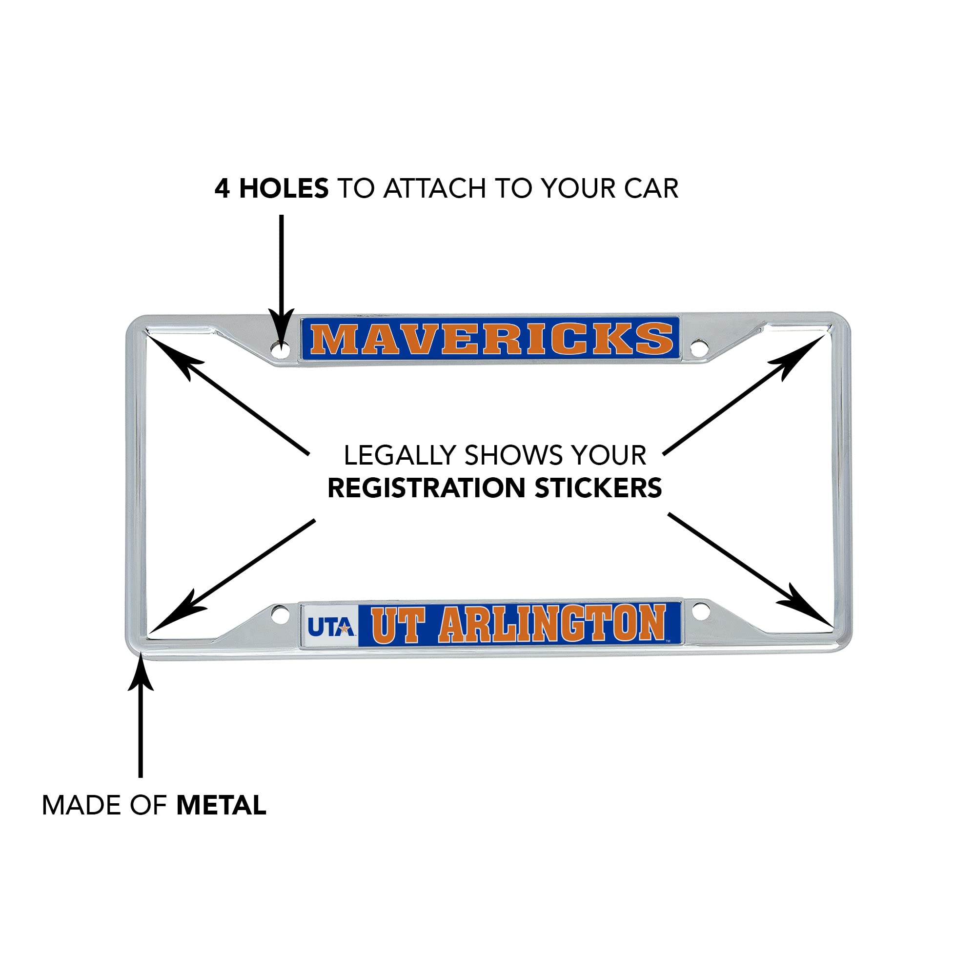 Amazon Com The University Of Texas At Arlington Uta Mavericks Metal License Plate Frame For Front Or Back Of Car Officially Licensed Alumni Automotive